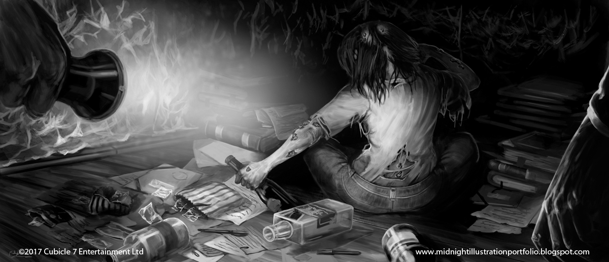 That was an interesting year, work-wise - I got to paint for a number of Lone Wolf Adventure Game books, some World War Cthulhu, The One Ring, and Adventures in Middle-earth, and I did get out to a graffiti festival (I wanted to do more, but the year was not always kind, bringing as it did some family loss). There might be other stuff that has to stay under NDA... I really couldn't say ;)